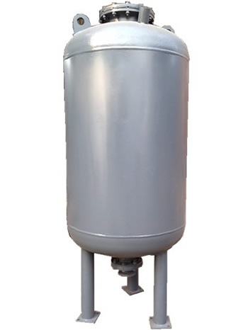 囊式定壓罐的工作原理:囊式定壓罐是由鋼質(zhì)外殼,橡膠氣囊內(nèi)膽構(gòu)成的儲能器件,橡膠氣囊把水室和氣室完全隔開。當系統(tǒng)壓力降低時,預充氮氣的壓力將氣囊里的水擠入系統(tǒng),減緩系統(tǒng)壓力降低,起到穩(wěn)壓作用;當系統(tǒng)壓力升至高于氣室里氮氣的壓力時,水進入氣壓罐的氣囊中,此時氣囊膨脹,吸收壓力,防止系統(tǒng)壓力急劇上升,起到穩(wěn)定系統(tǒng)壓力作用。